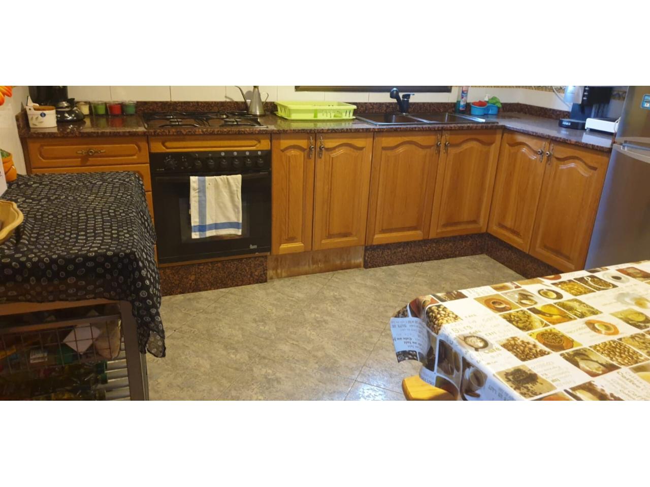 En la planta primera con entrada independiente del garaje esta la vivienda, con salón comedor, cocina independiente, baño completo y tres habitaciones, 1 individual y 2 dobles.